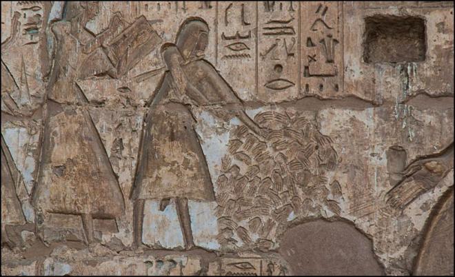 𓐍𓃀𓇋𓇋𓏏 𓀐𓏥 (lire ḫbyt /khébit) : carnage, hécatombe.