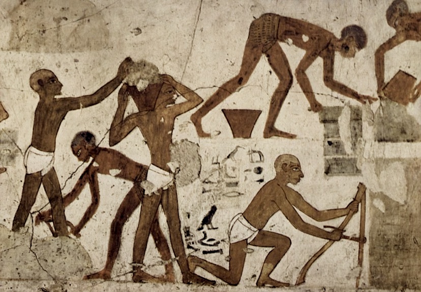 Mais il est important de rappeler ici que contrairement Ă ce qui a Ă©tĂ© rĂ©pandu dans l’opinion commune, dans l’imaginaire populaire et Ă ce qui est cru par la plupart des adeptes des religions dites rĂ©vĂ©lĂ©es, selon les rĂ©cits racontĂ©s par ces derniĂšres, qu’aucun groupe humain particulier, ni ancien Ă©gyptien ni autre, n’a Ă©tĂ© soumis en esclavage en Ăgypte ancienne. L’Ăgypte ancienne n’a jamais Ă©tĂ© une terre d’esclavage sous le rĂšgne des pharaons autochtones. Les ouvriers sur les chantiers pharaoniques ne subissaient pas d’exactions. Ils Ă©taient bien nourris, logĂ©s et blanchis et recevaient des rations mensuelles de blĂ©, de lĂ©gumes, de fruits, de la viande (du poisson Ă l’occurrence) au quotidien et mĂȘme de quoi brasser leur propre biĂšre. Ils bĂ©nĂ©ficiaient aussi de soins mĂ©dicaux et de congĂ©s payĂ©s et pouvaient se mettre en grĂšve. La premiĂšre grĂšve de travailleurs de l’histoire humaine remonte d’ailleurs Ă l’Ăgypte ancienne. La rĂ©fĂ©rence biblique que nous donnons ci-dessous Ă titre linguistique seulement ne doit pas ĂȘtre sous-entendue qu’un groupe humain particulier aurait effectivement subi un quelconque joug esclavagiste en terre d’Ăgypte ancienne.