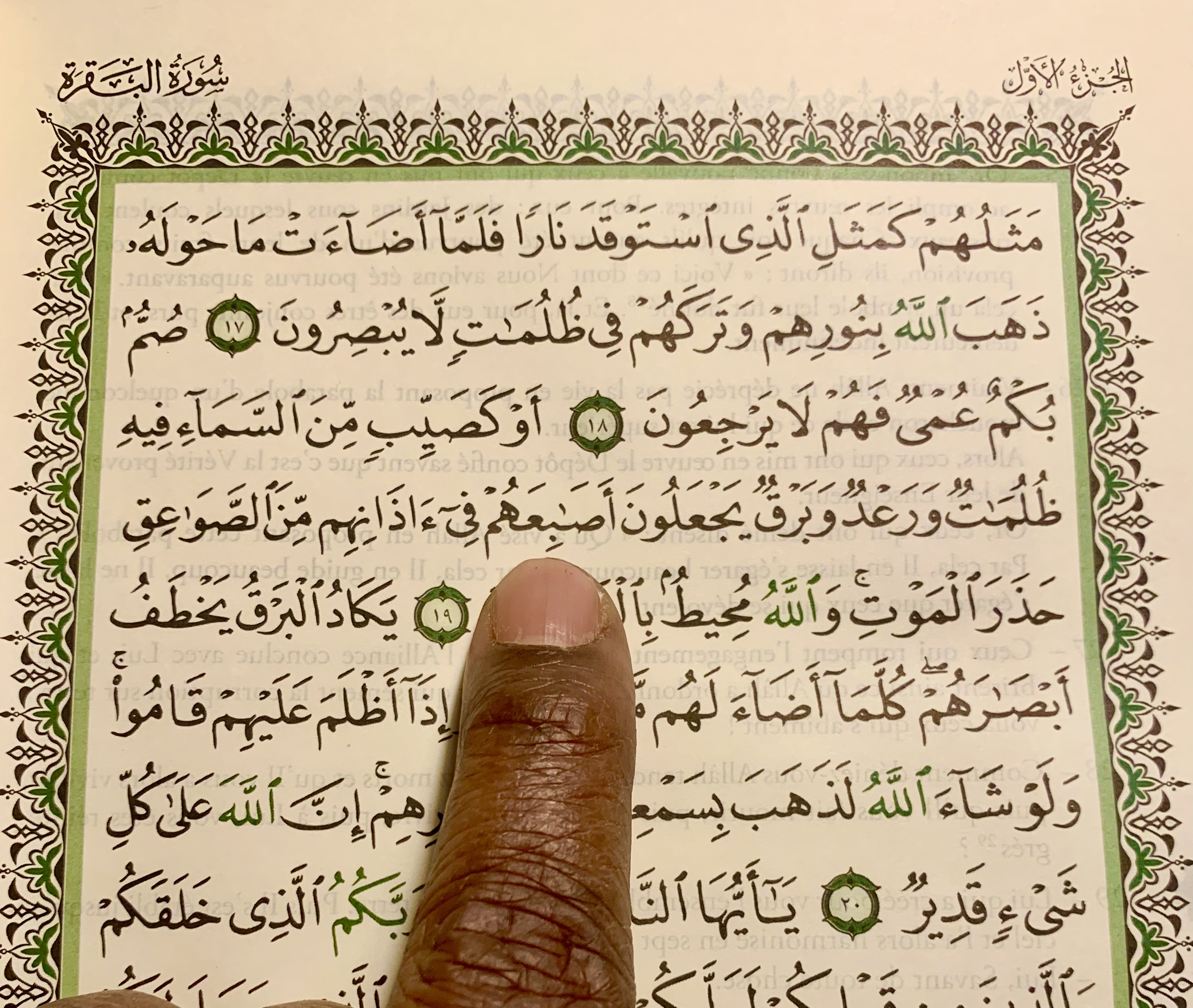 Sourate 2 ۧÙŰšÙ۱۩ / Al-Baqara- La vache, verset 138, in Le Coran, essai de traduction et annotations par Maurice Gloton, Ă©dition bilingue: arabe-français, AlBouraq, 2018.