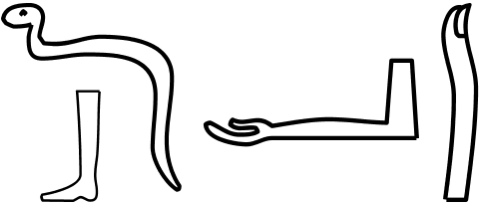 đđ€ (lire Êż / Ăą) : nom dĂ©signant en ancien Ă©gyptien : 1-Bras- 2- Main- 3- Patte dâanimal. Ou lâacte, lâaction manuels.